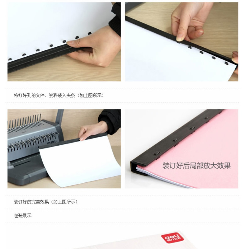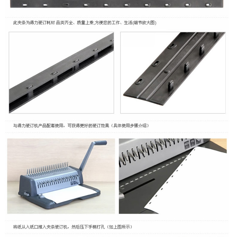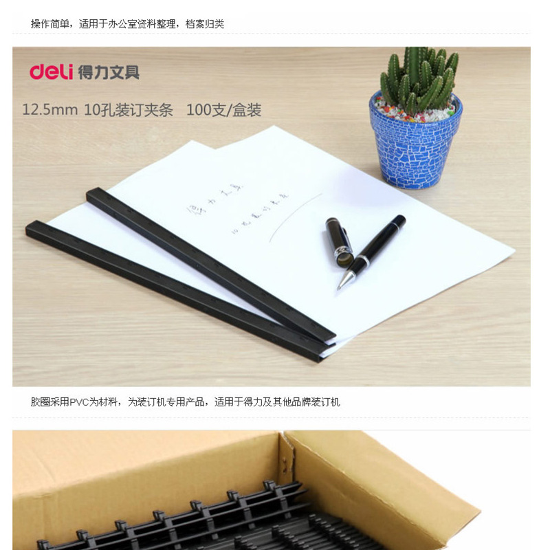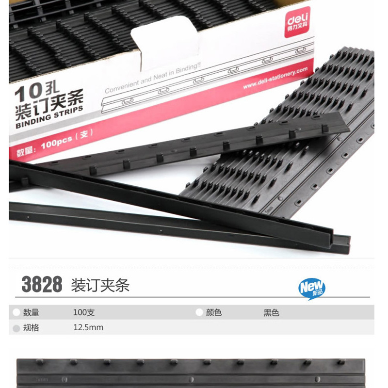 得力(deli) 3829 10孔裝訂夾條 15mm 100支/盒 可裝訂150頁(藍色)