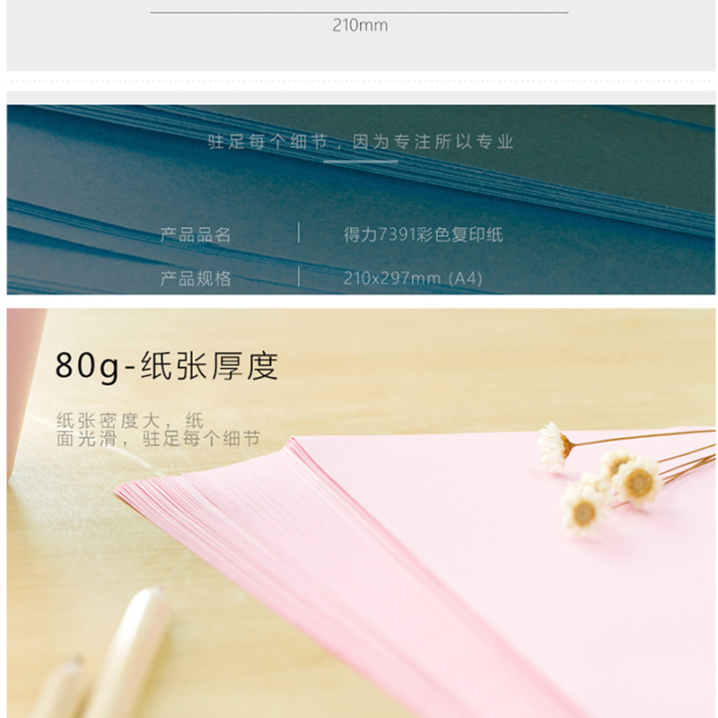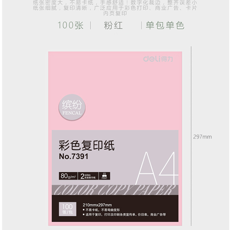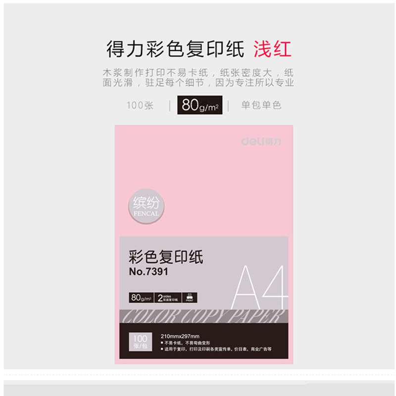 得力(deli) 7391 彩色復印紙 A4/80g 100張/包(粉色)