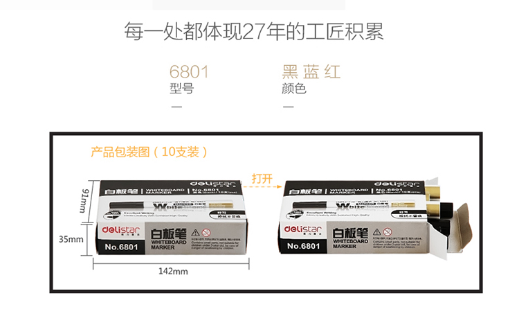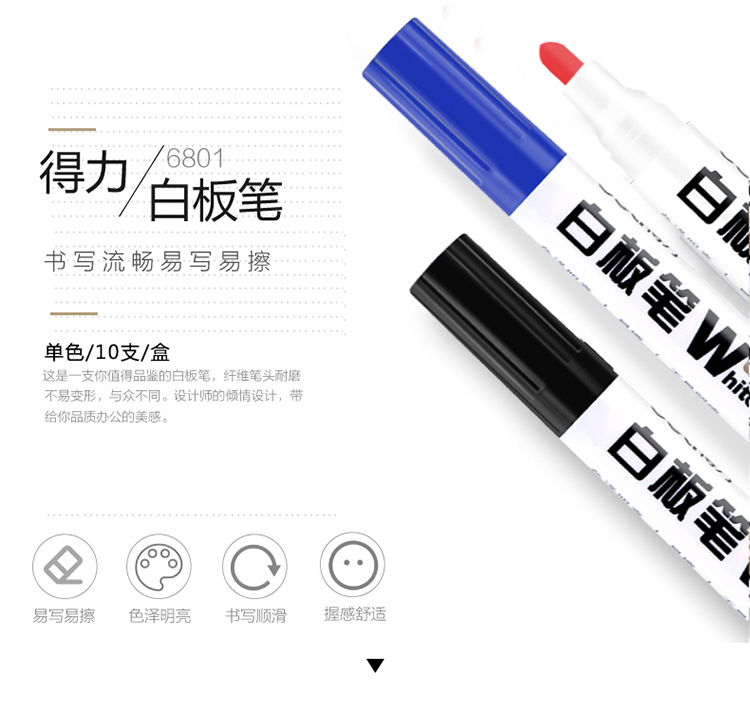 得力(deli) 6801 簡易實用白板筆 10支裝(黑色)