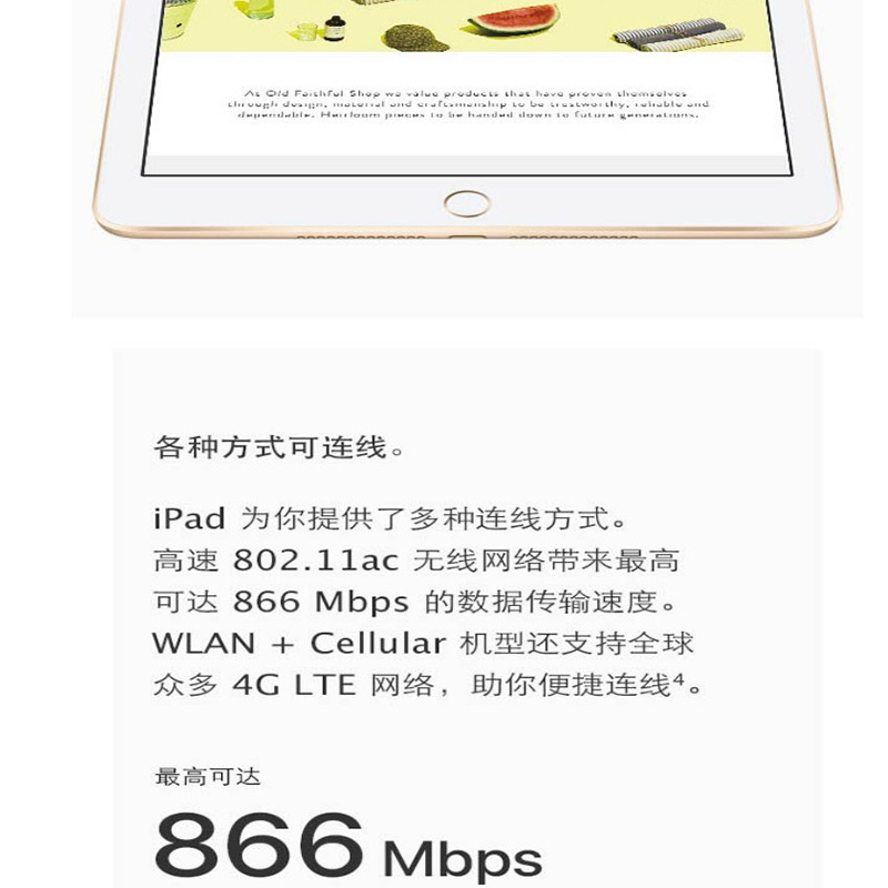 蘋果 Apple iPad 平板電腦(128G WLAN + Cellular版/A9 芯片/Retina屏/Touch ID技術(shù) MPG52CH/A) (銀色)