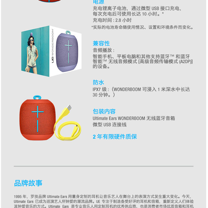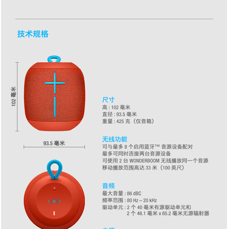 羅技(Logitech) UE WONDERBOOM 無(wú)線藍(lán)牙 便攜音箱 (灰色)