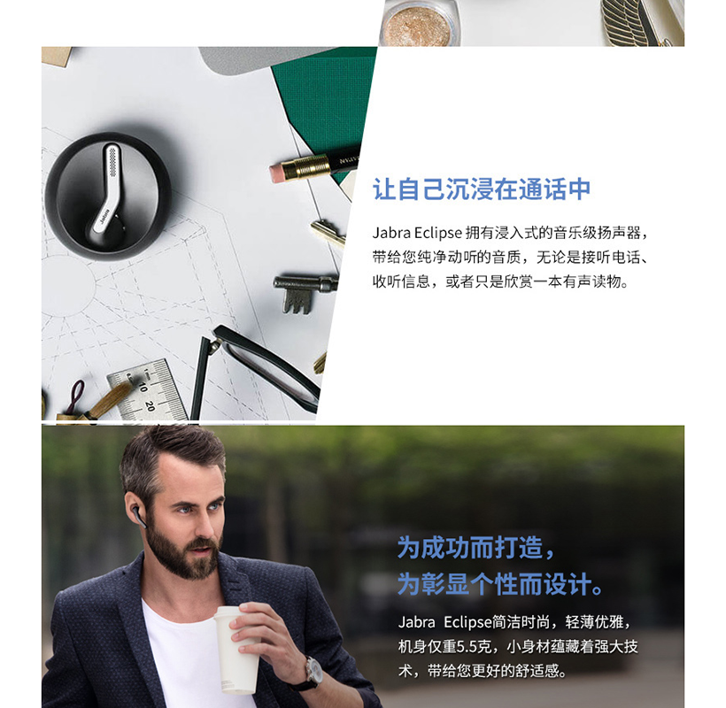 捷波朗(Jabra) Eclipse/壹石 專業(yè)智能商務(wù)藍(lán)牙耳機(jī)(白色)