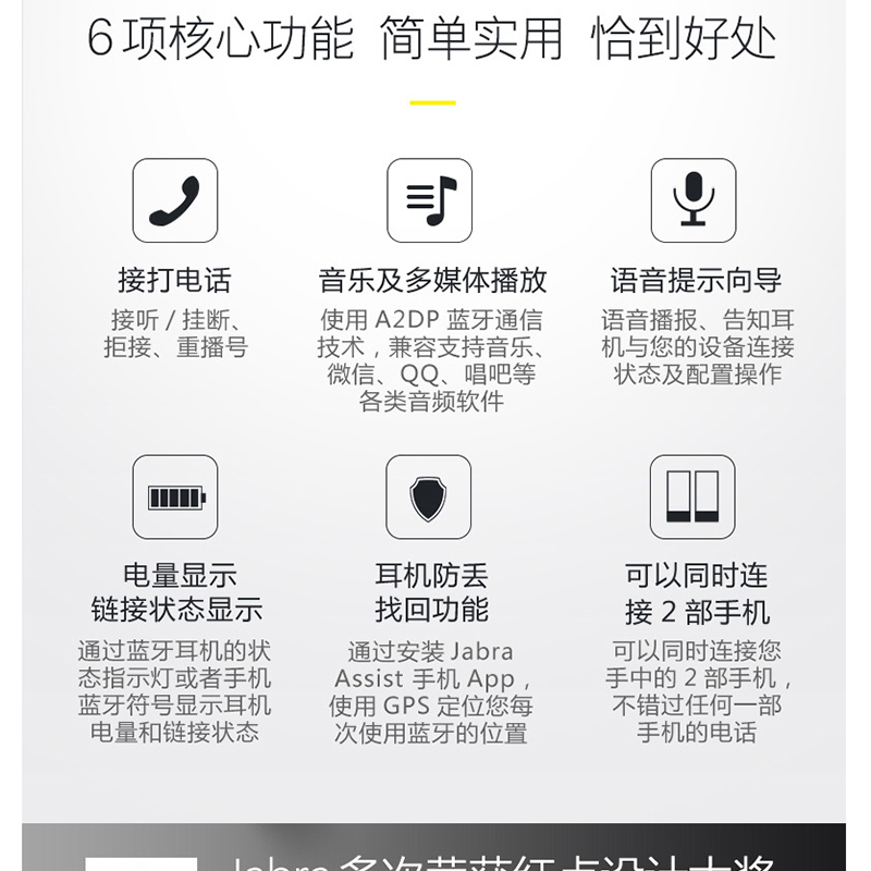 藍(lán)牙4.0 耳機(jī)定位 低能耗 超強(qiáng)兼容 質(zhì)更立體 靈敏高 聲音捕捉更清晰 ?