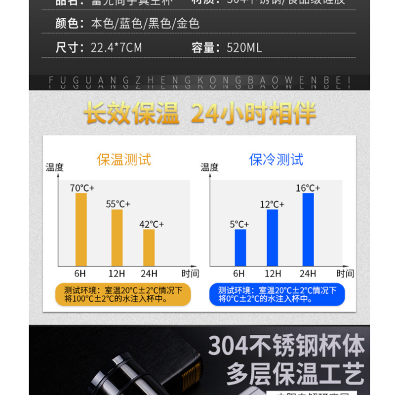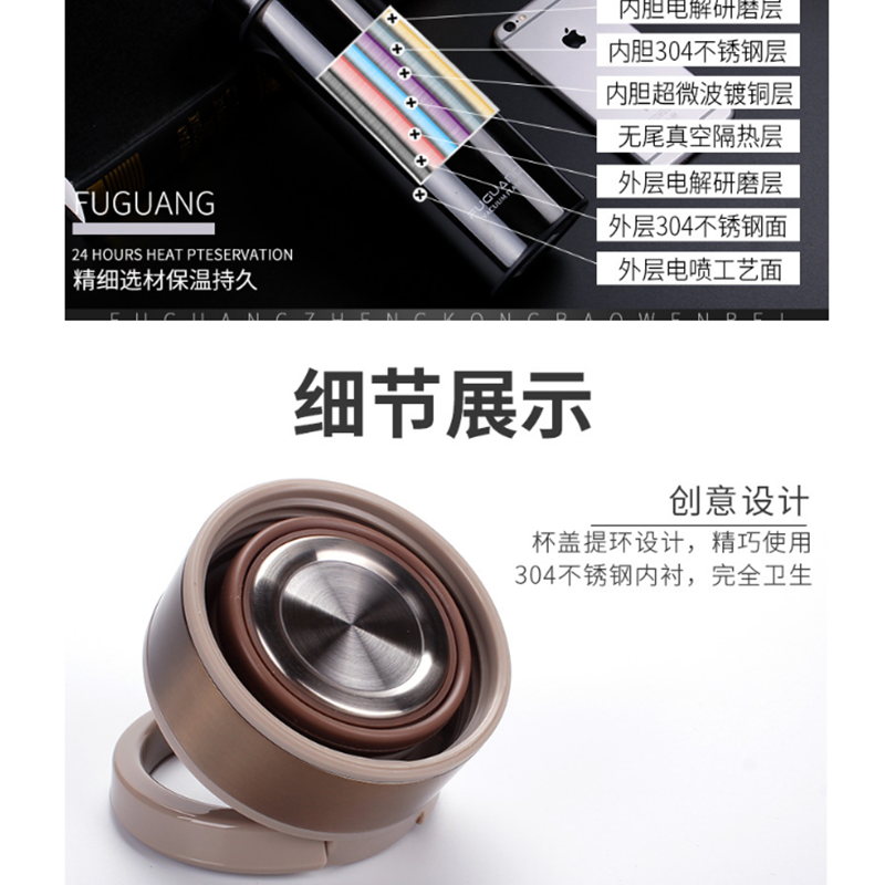 富光 3644 保溫杯便攜大容量304不銹鋼男女車載真空水杯商務(wù)茶杯 520ml(本色)