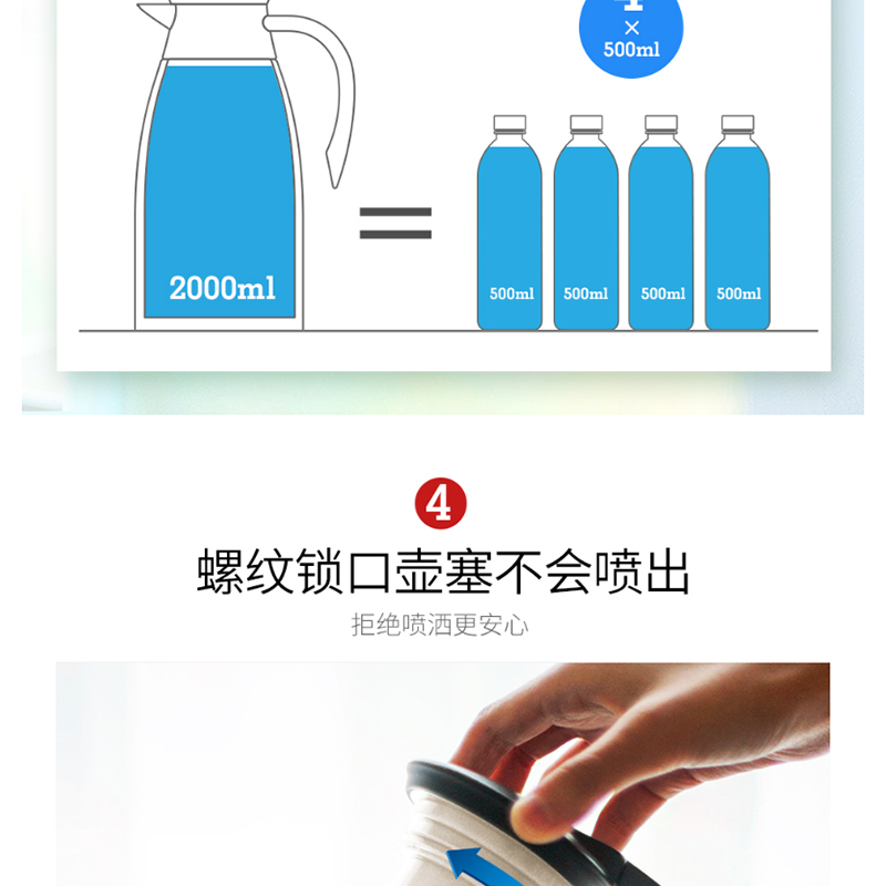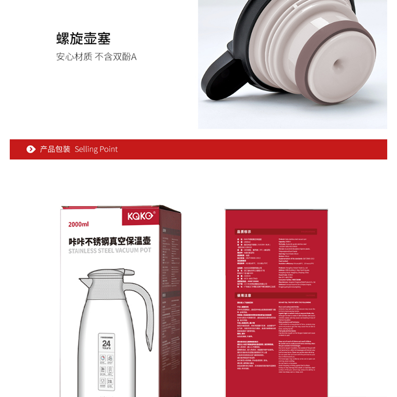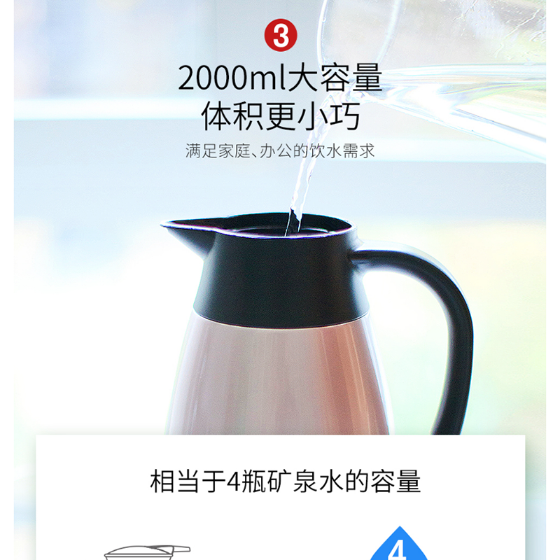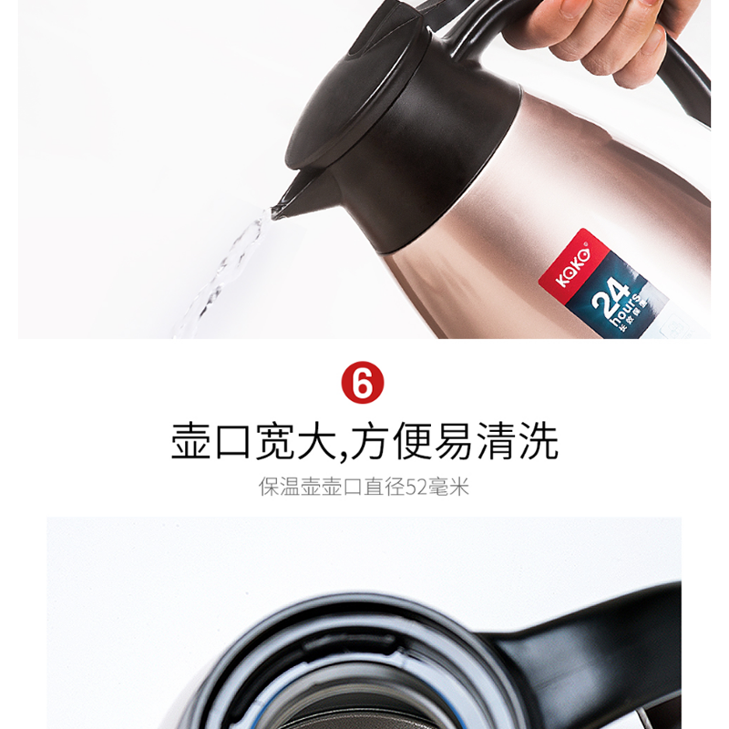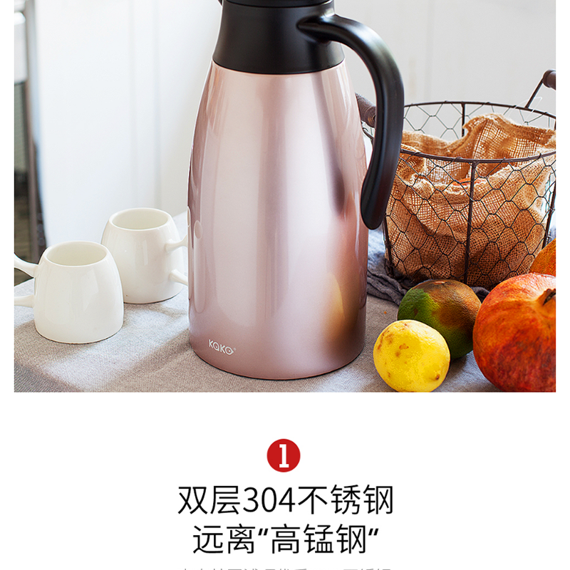 咔咔 KSC-2000-1 保溫壺家用暖壺水壺?zé)崴颗?L開水瓶保溫瓶大容量不銹鋼保暖壺歐式咖啡壺 (香檳金)