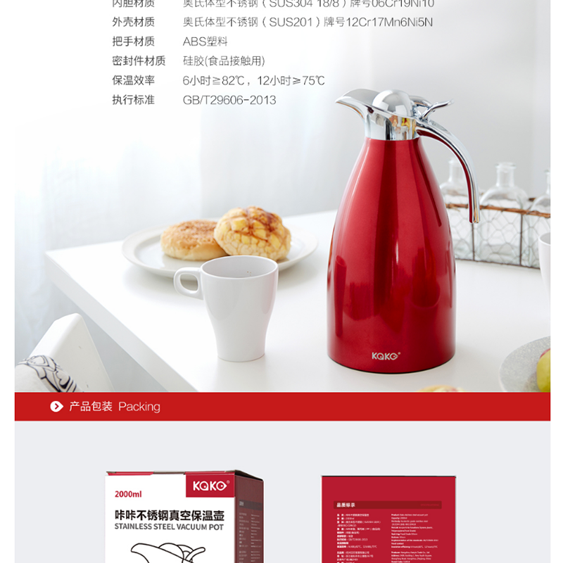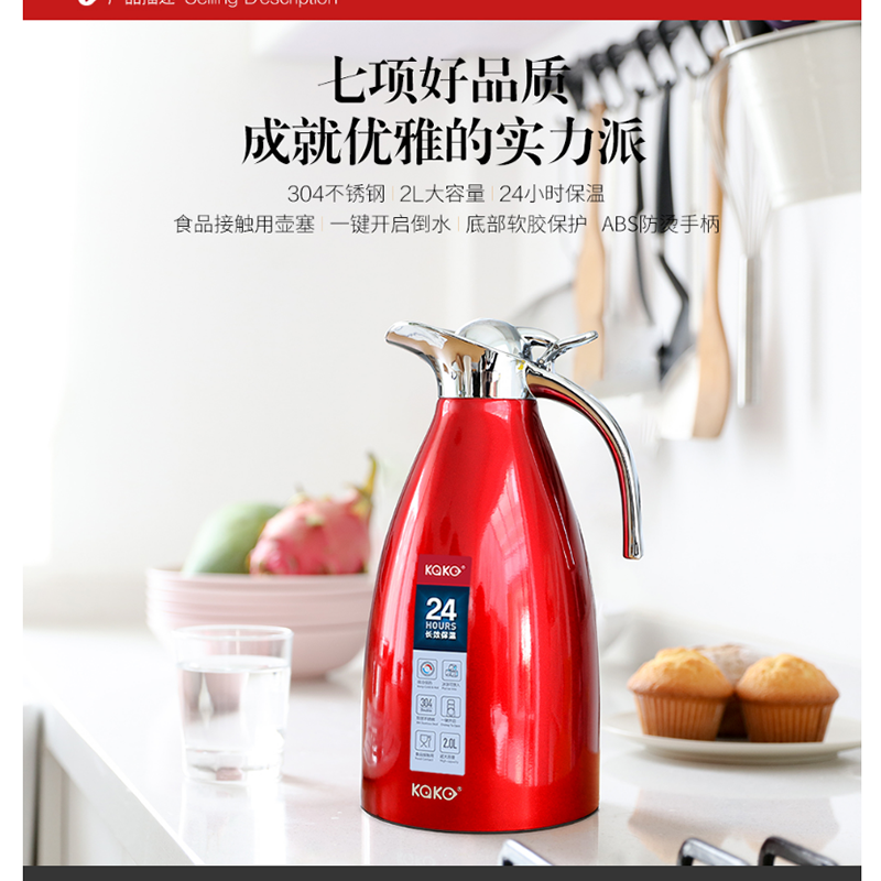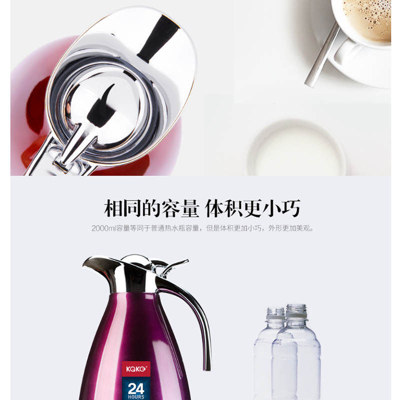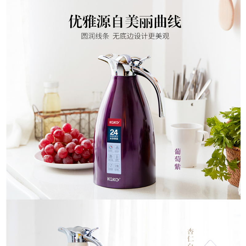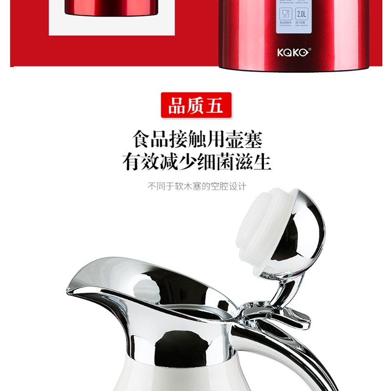 咔咔 KSC-2000-3 保溫壺家用暖壺大容量水壺?zé)崴繗W式暖瓶開水瓶保溫瓶2L 保暖壺咖啡壺(杏仁白)
