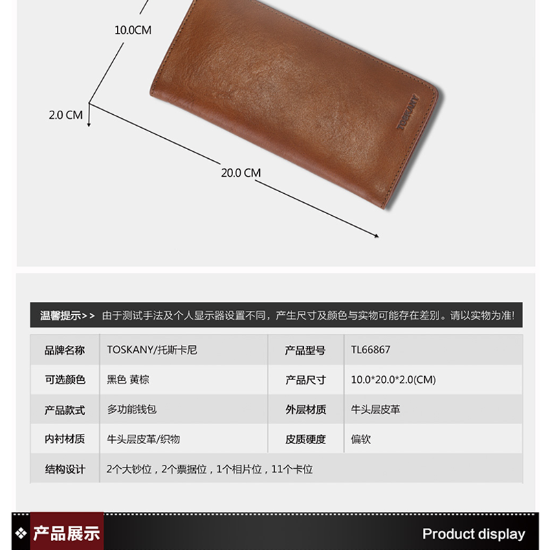 托斯卡尼(TOSKANY) TL66867 商務(wù)休閑男士長(zhǎng)款錢夾/錢包 頭層牛皮 (黑色)