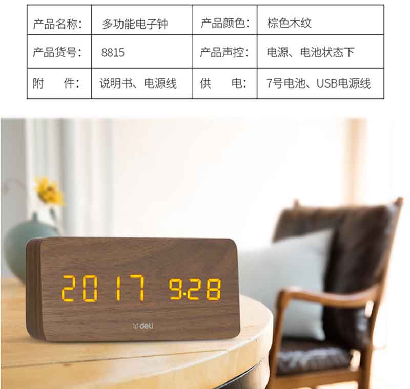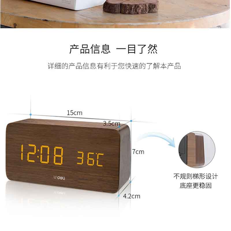 得力(deli) 8814 多功能電子鐘 100*42*70mm (棕色)
