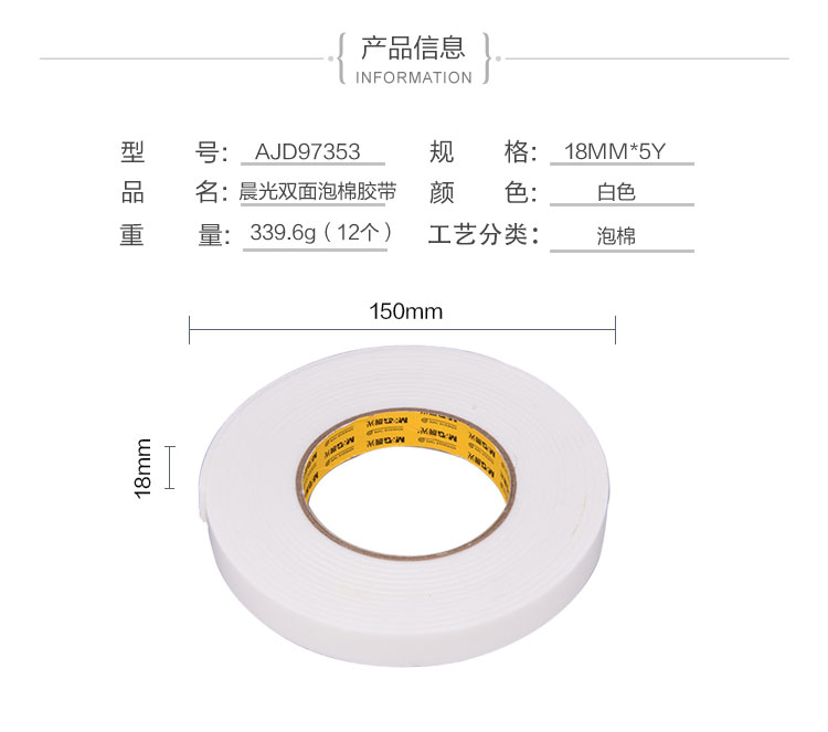 晨光(M&G) AJD97353 雙面泡棉膠帶18mm*5y 1卷裝
