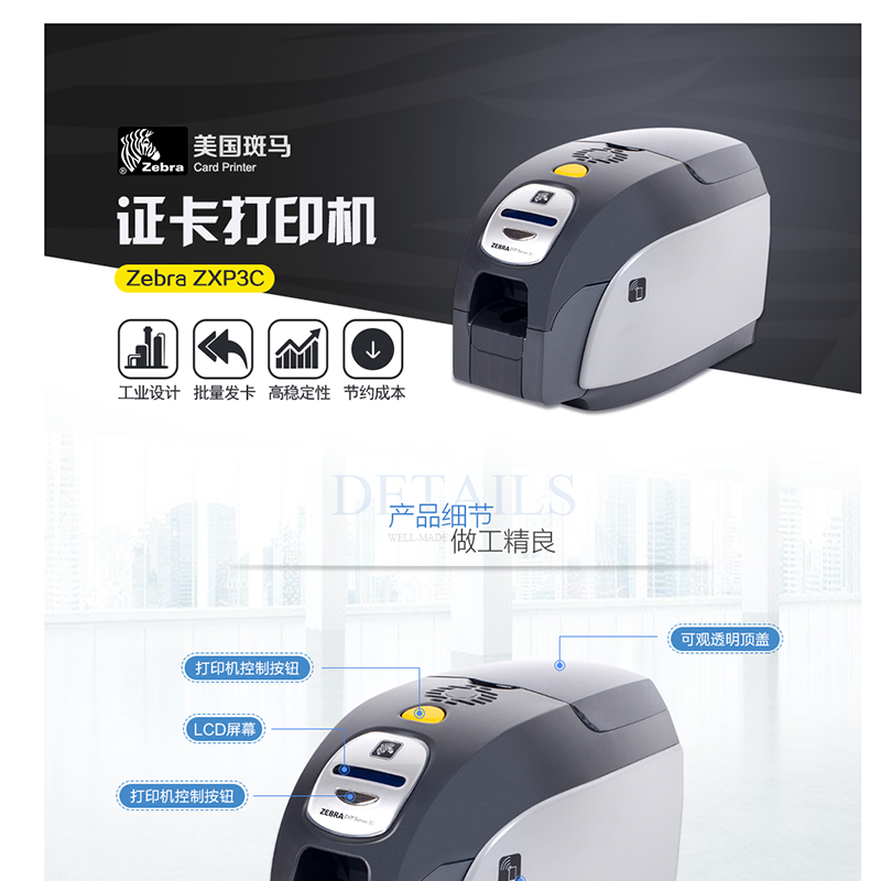 斑馬(ZEBRA) ZXP3C 證卡打印機(jī) 制卡機(jī)/學(xué)生證/健康證/門禁打印 (單面打印)