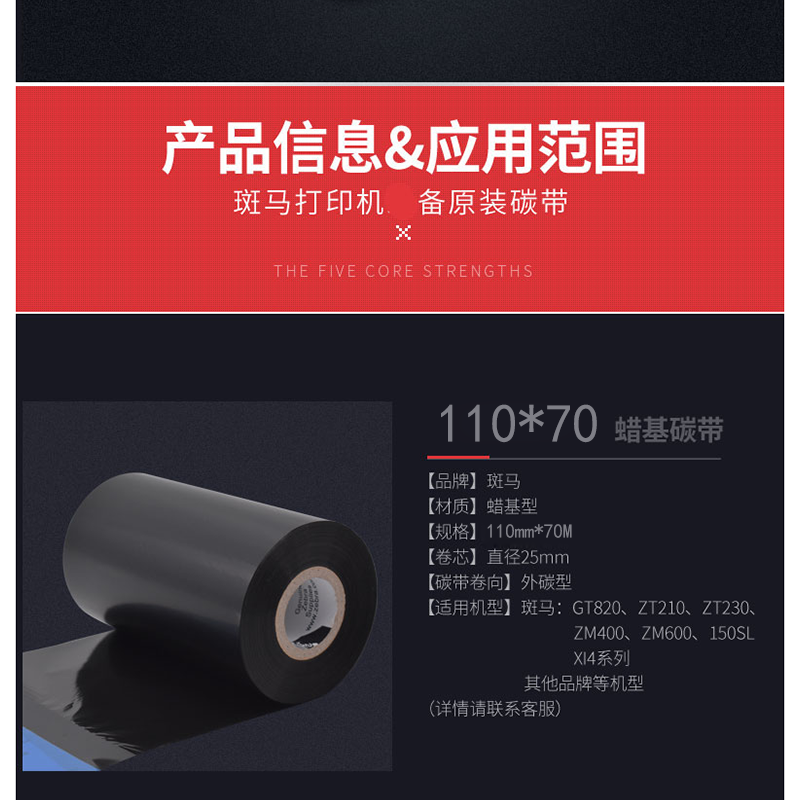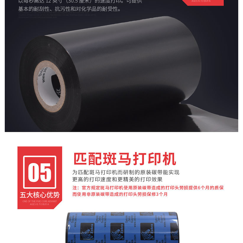 斑馬(ZEBRA) A1701 條碼打印機(jī)碳帶/蠟基碳帶 (小卷芯110mm*70m)