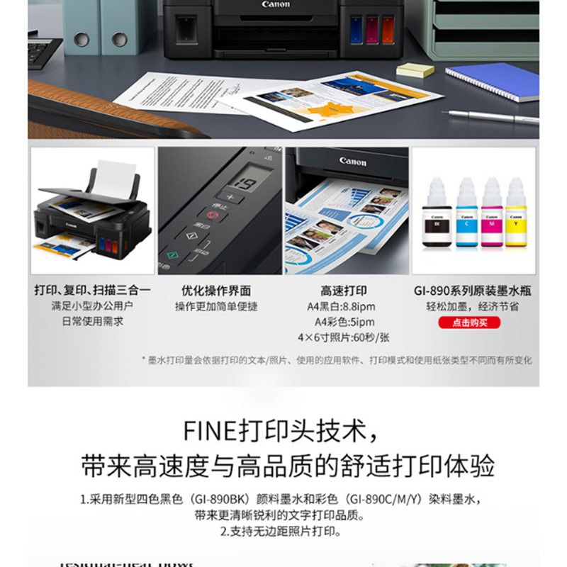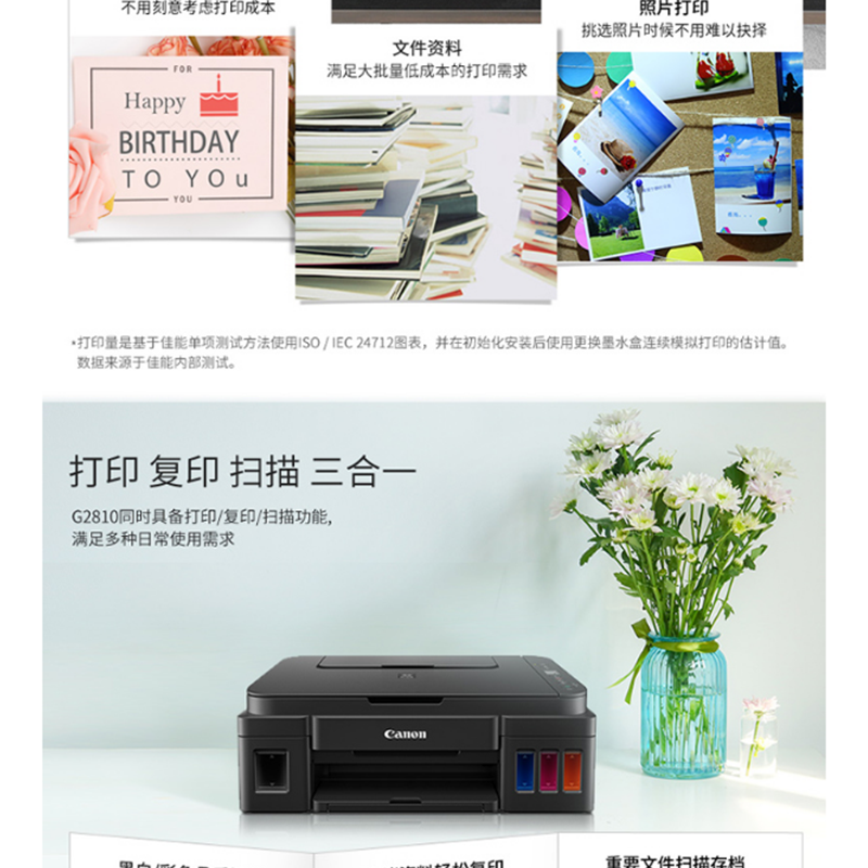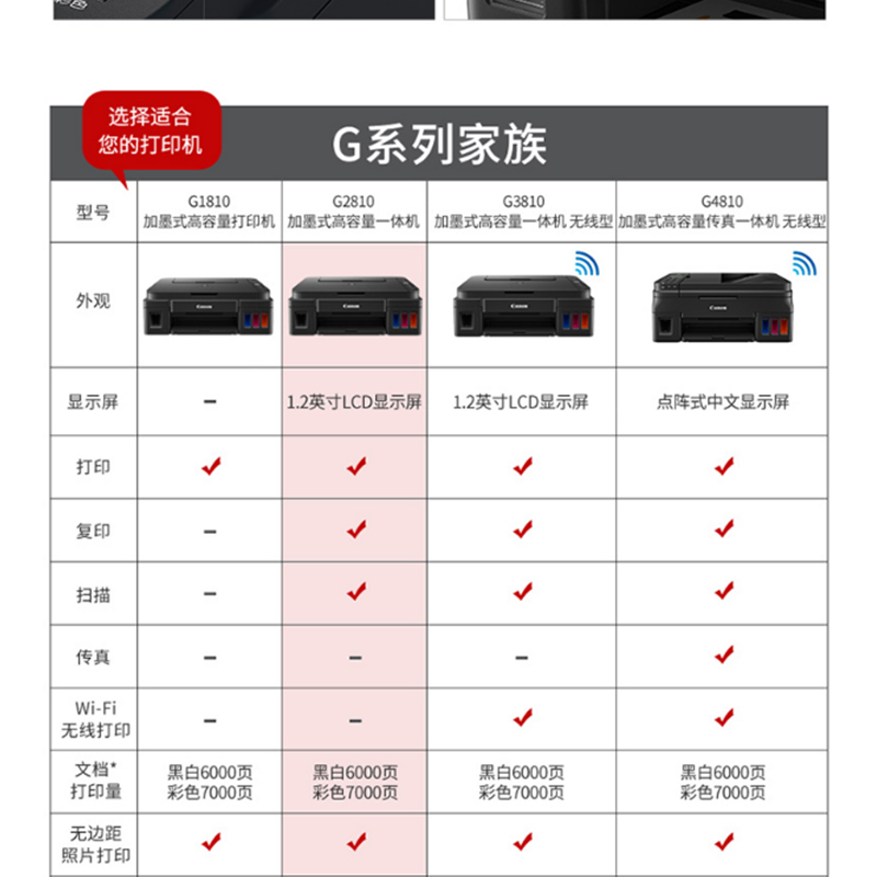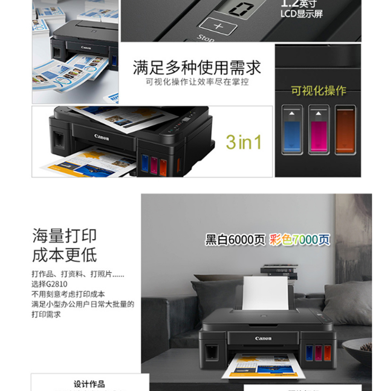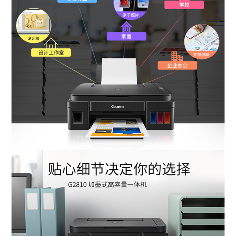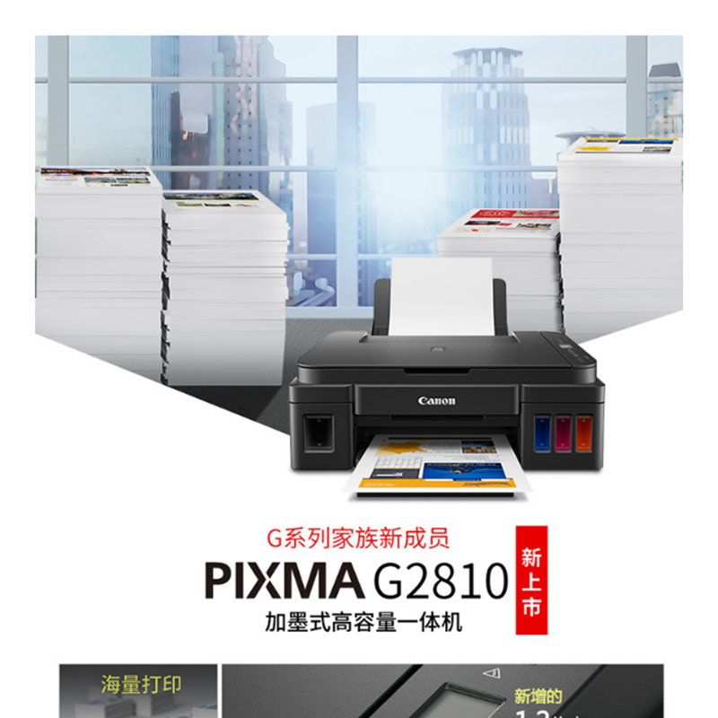 佳能(Canon) G2810 加墨式 高容量噴墨打印一體機 (打印復(fù)印掃描)