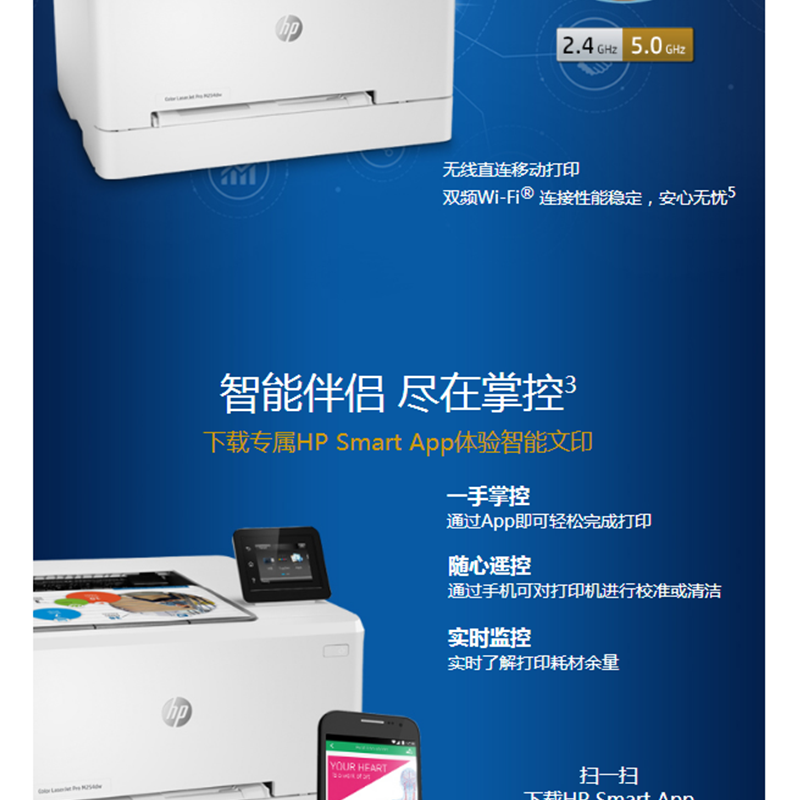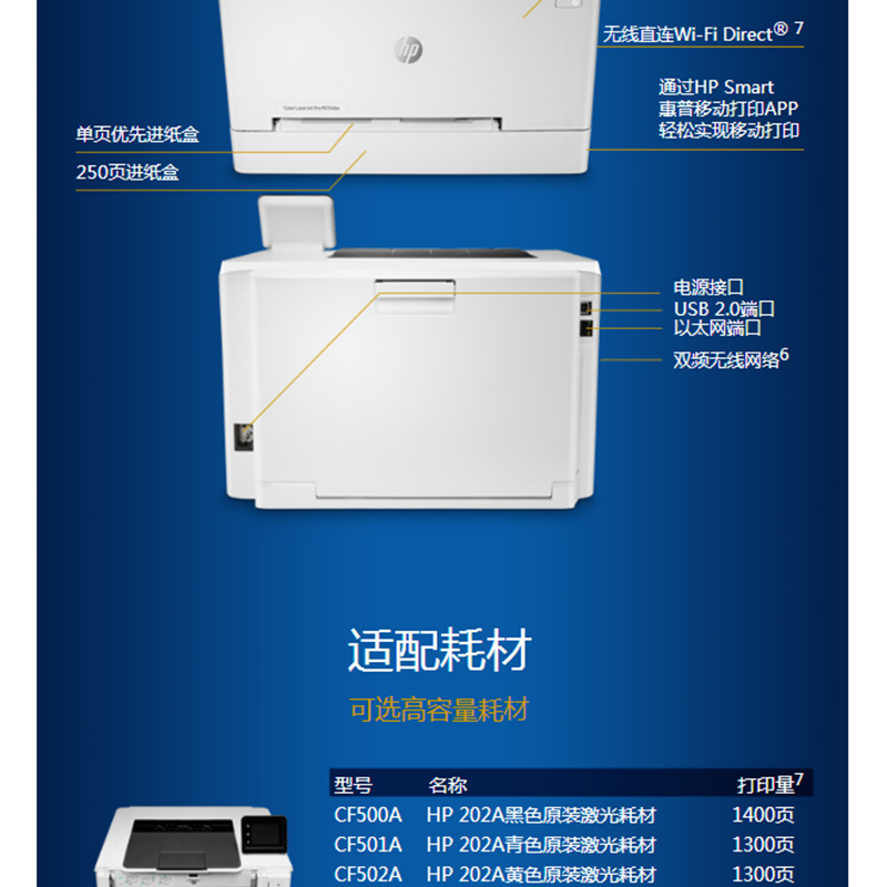 惠普(HP) M254dw 彩色激光打印機 (無線打印,自動雙面)
