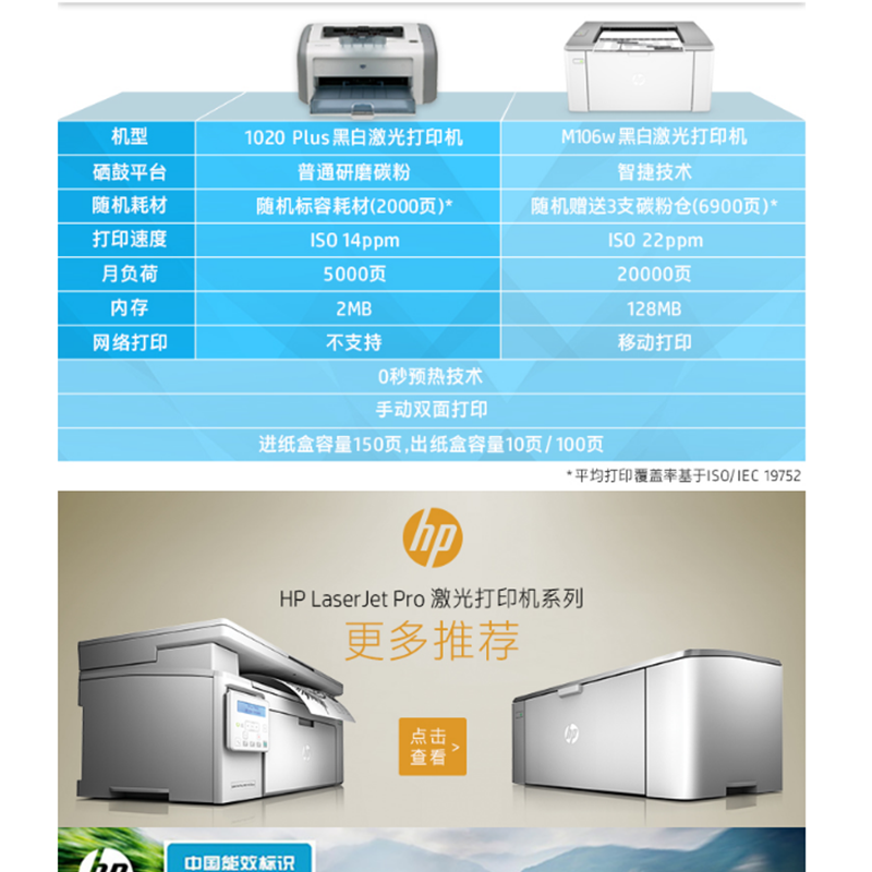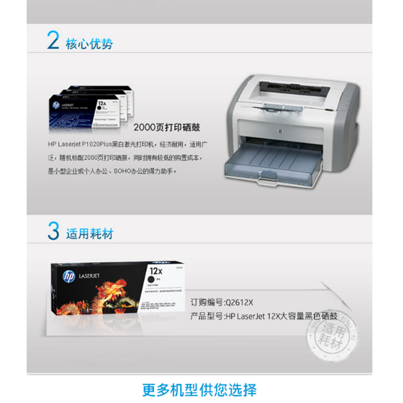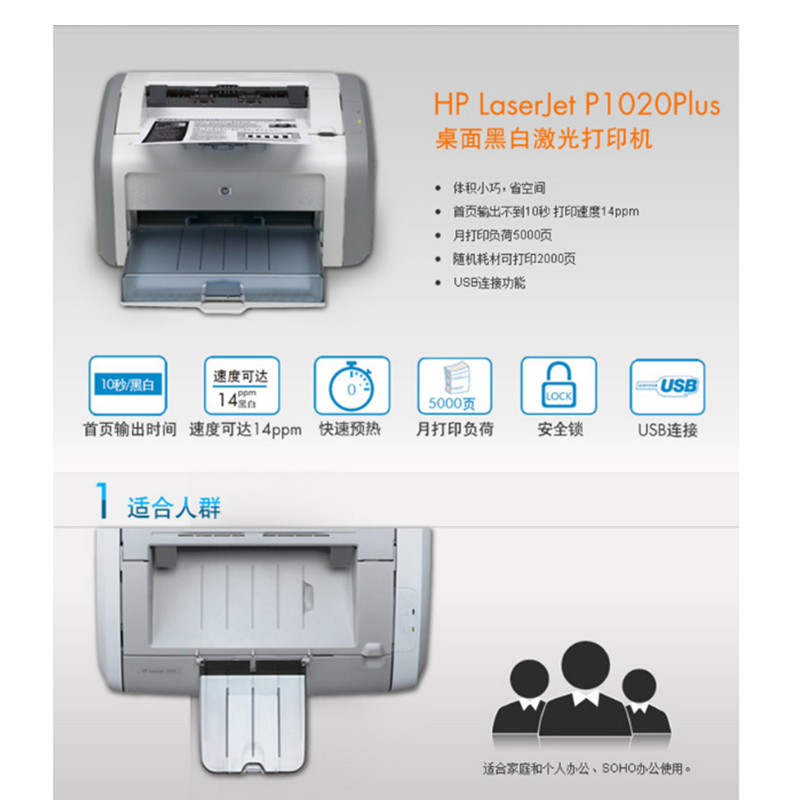 惠普(HP) 1020 Plus 黑白激光打印機 (經(jīng)典款,14頁/分鐘)