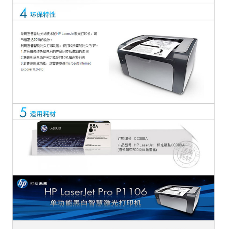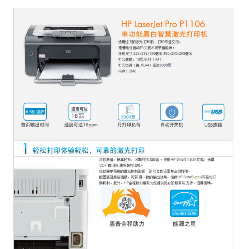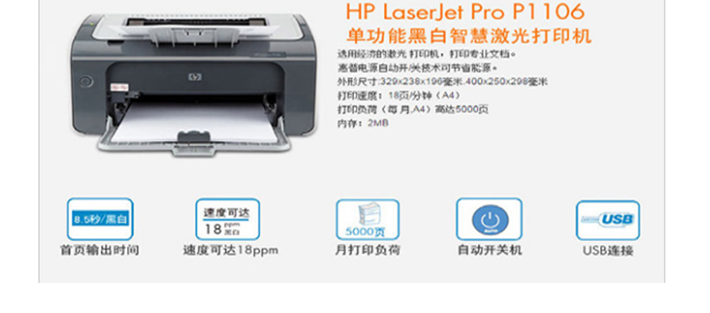 惠普(HP) P1106 黑白激光打印機(jī) (暢銷款,18頁(yè)/分鐘)