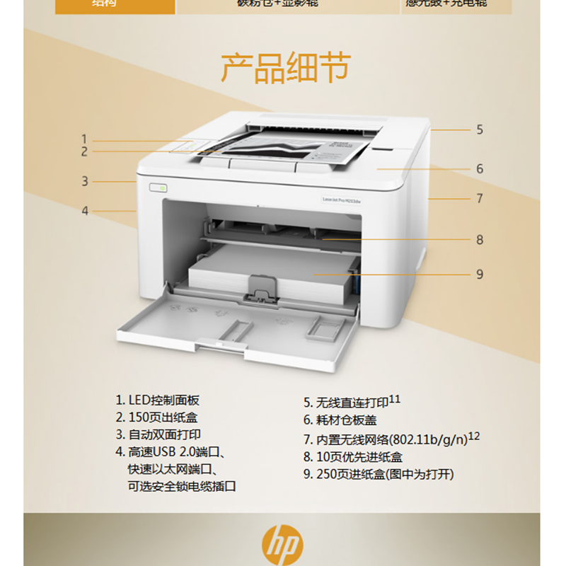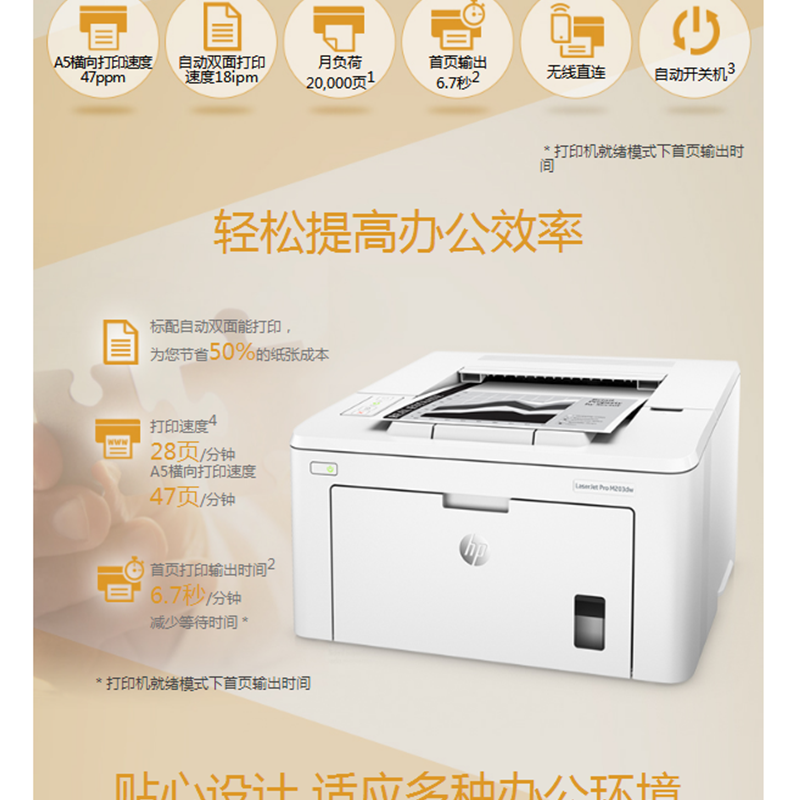 惠普(HP) M203dw 黑白激光打印機 (無線打印,自動雙面)