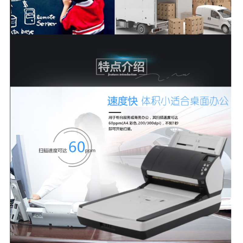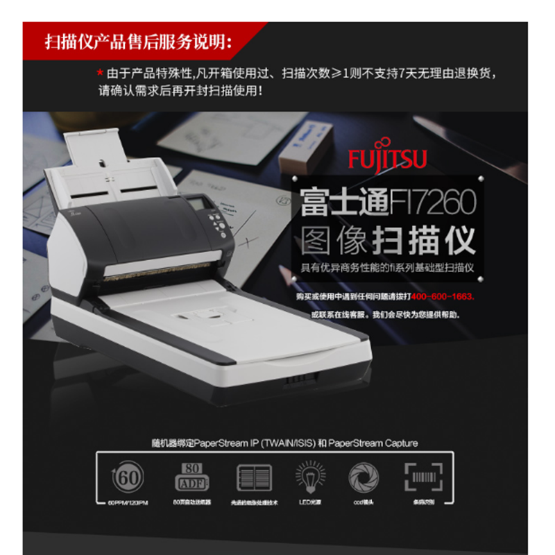 富士通(Fujitsu) Fi-7260 平板+饋紙式掃描儀 A4高速雙面自動進(jìn)紙 (60頁120面/分鐘)