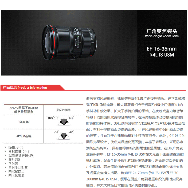 佳能(Canon) EF 16-35mm f/4L IS USM 廣角變焦鏡頭