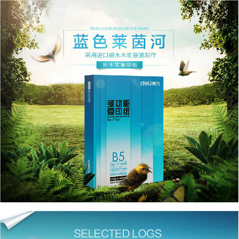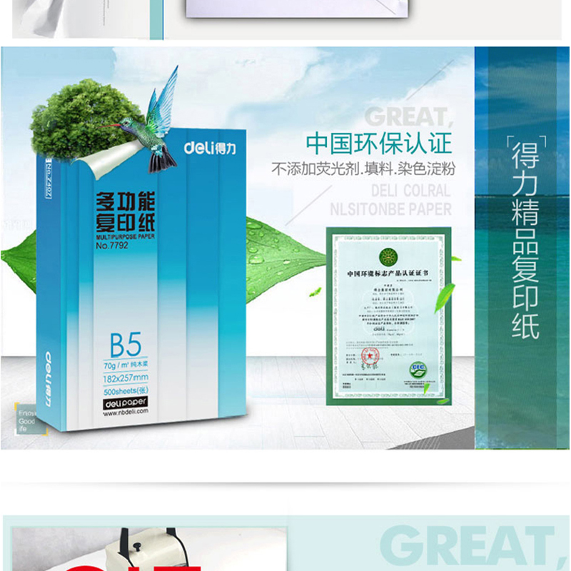 得力(deli) 7793 萊茵河系列復印紙/打印紙 B5/70g 8包/箱