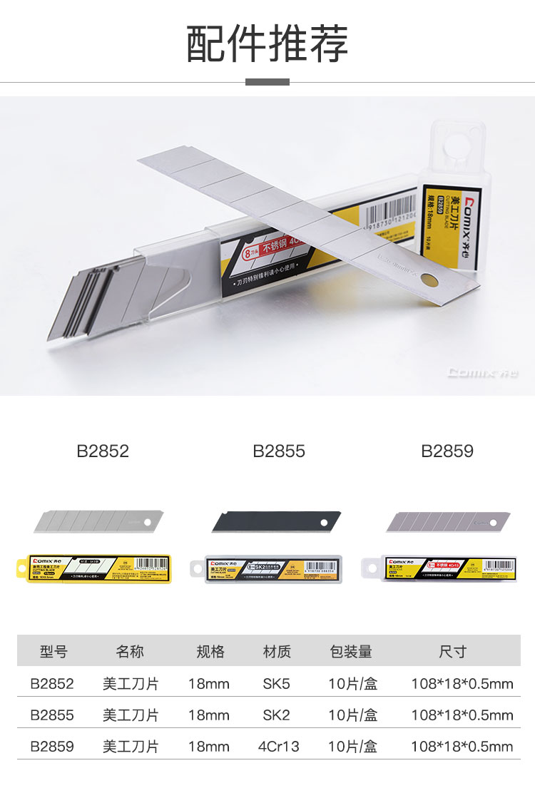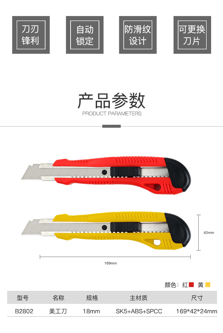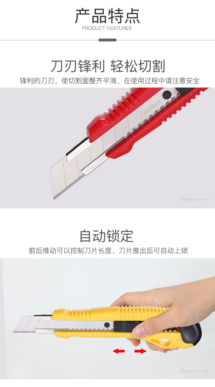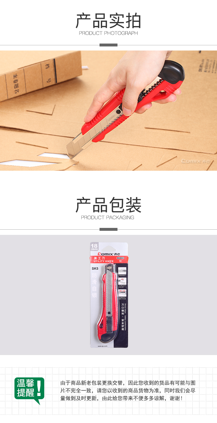 齊心(COMIX) B2802 18mm帶金屬保護(hù)套美工刀大號(hào)壁紙刀顏色隨機(jī)