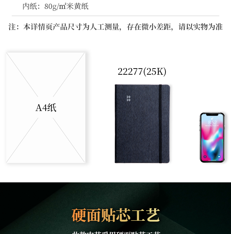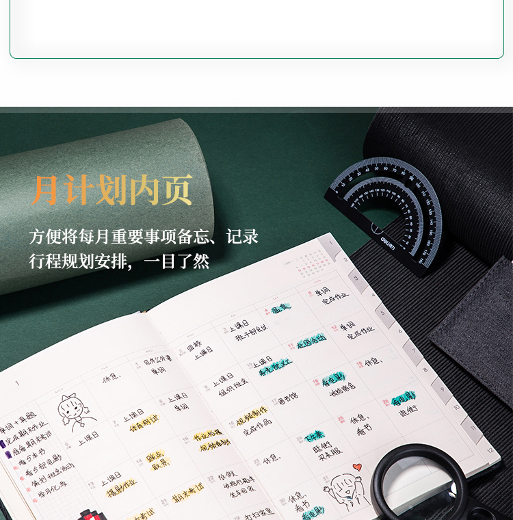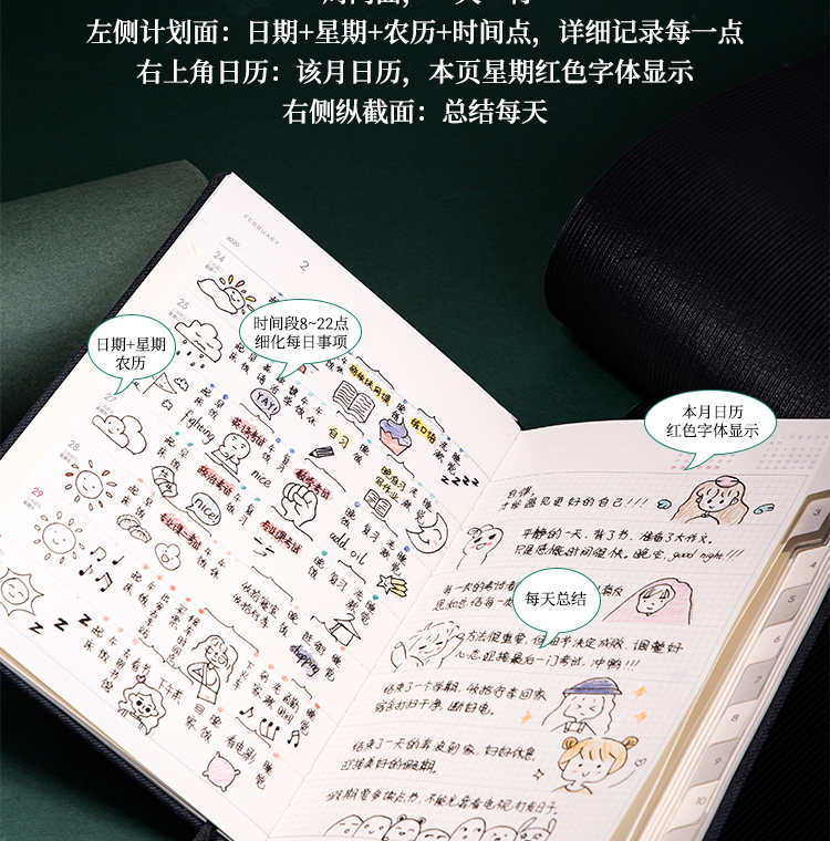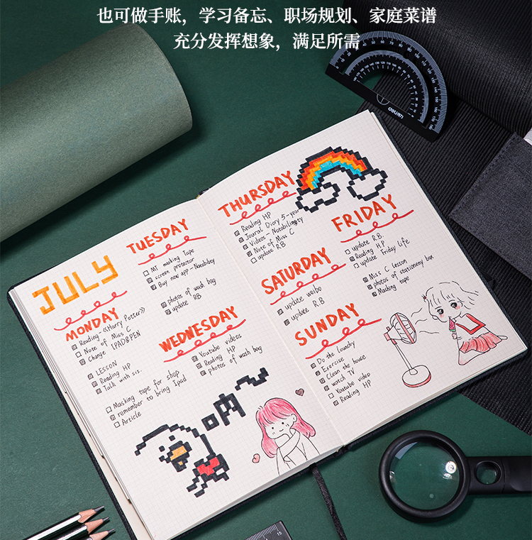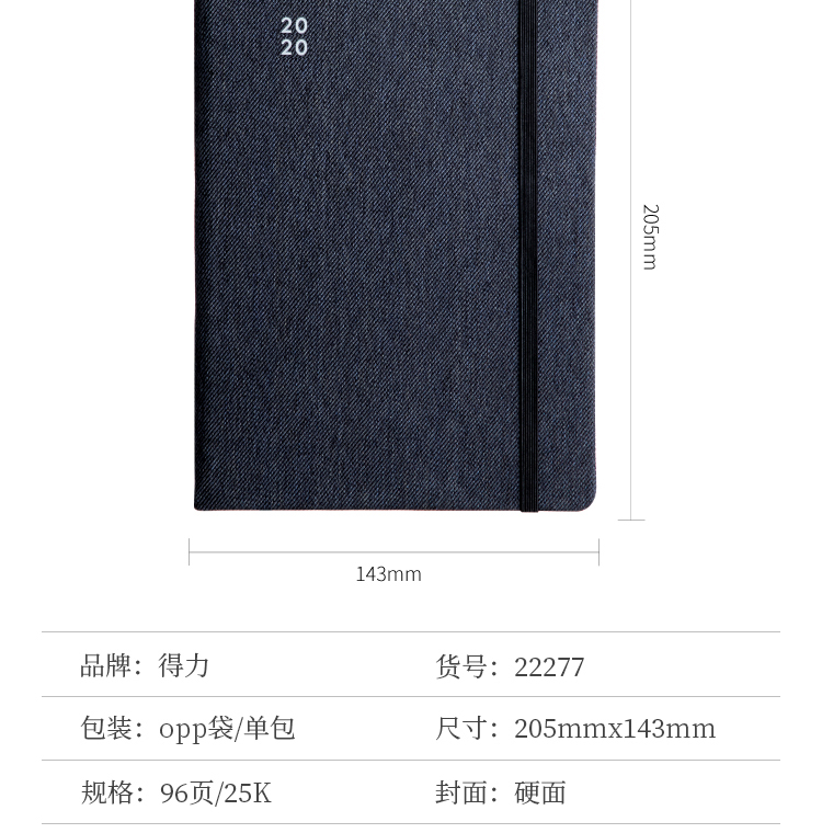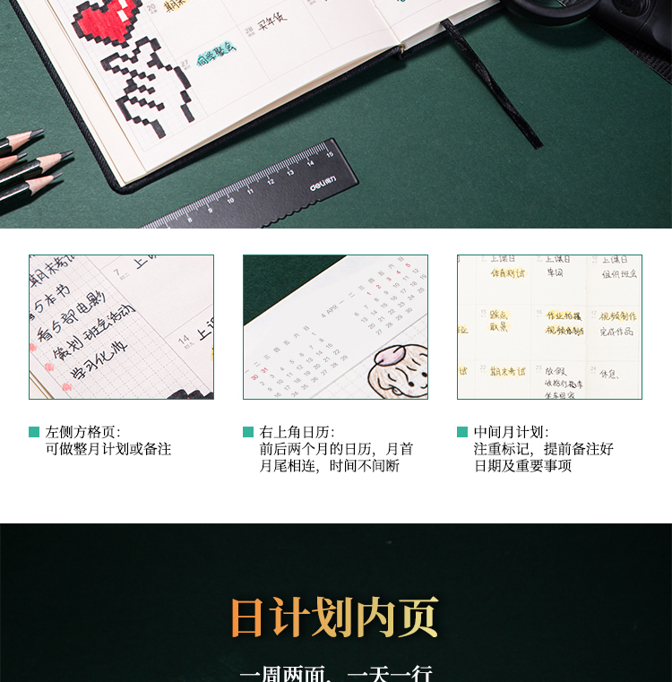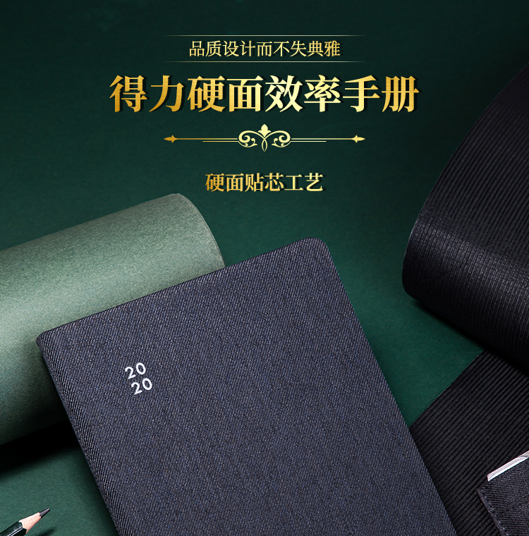 得力(deli)25K96張綁帶筆記本子 工作效率手冊(cè)本 日程計(jì)劃記事本 黑色22277