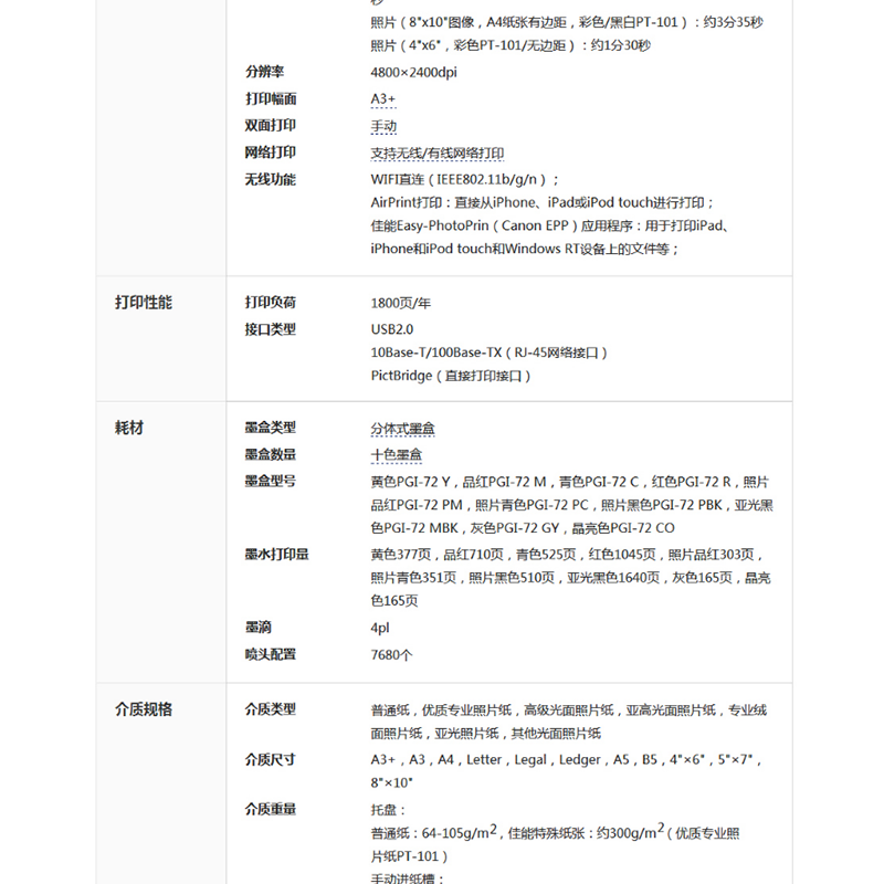 佳能(Canon) PRO-10 影像級專業(yè)照片打印機 噴墨打印 A3