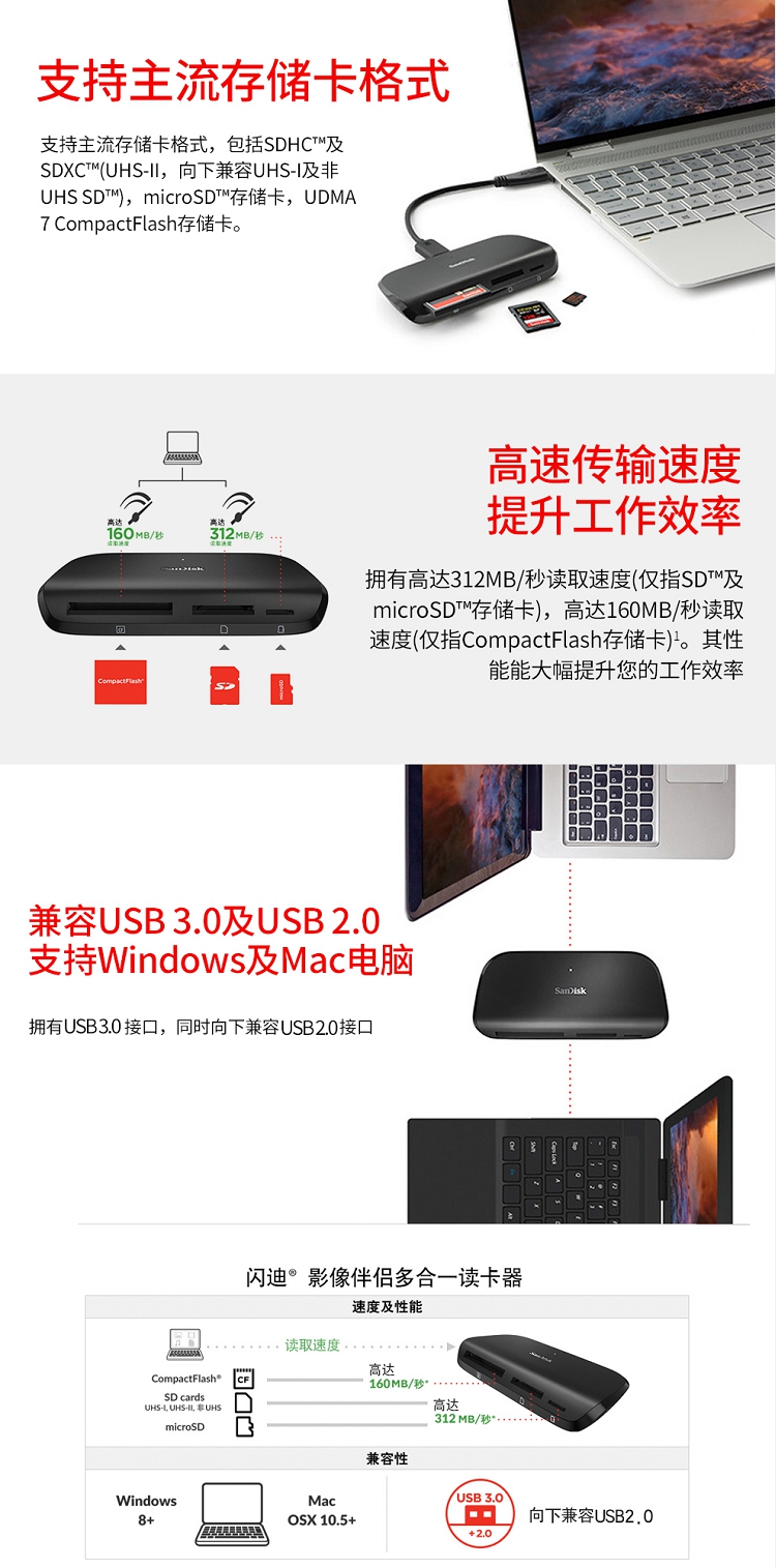 閃迪(SanDisk) SDDR-489 多合一多功能高速讀卡器UHS-II