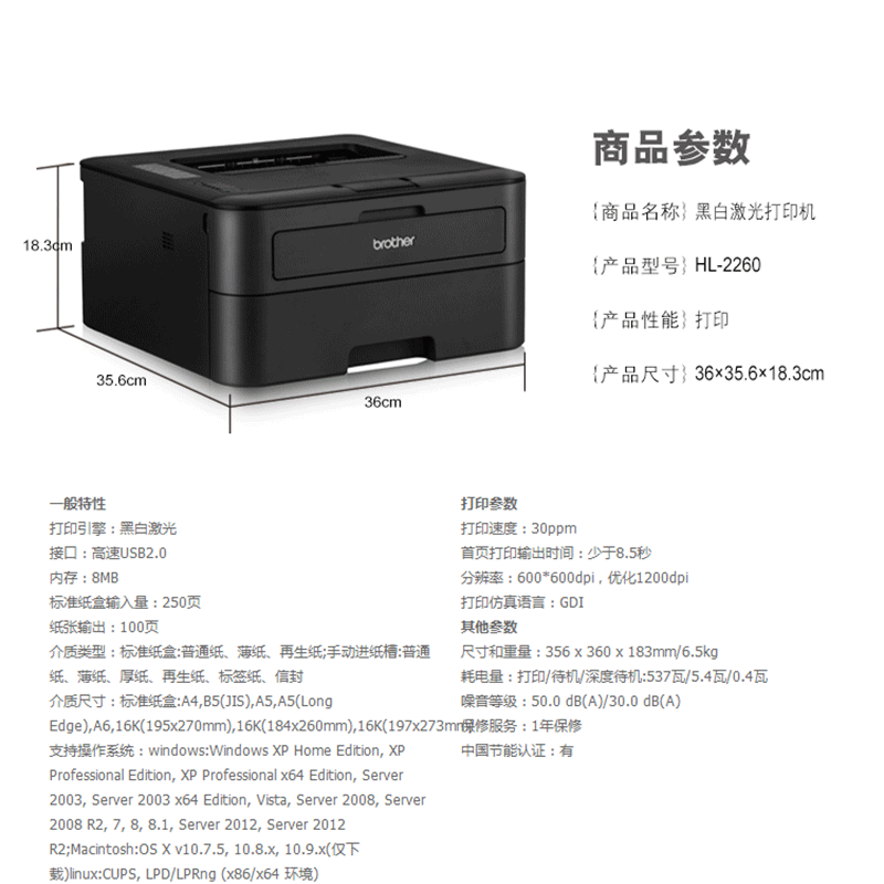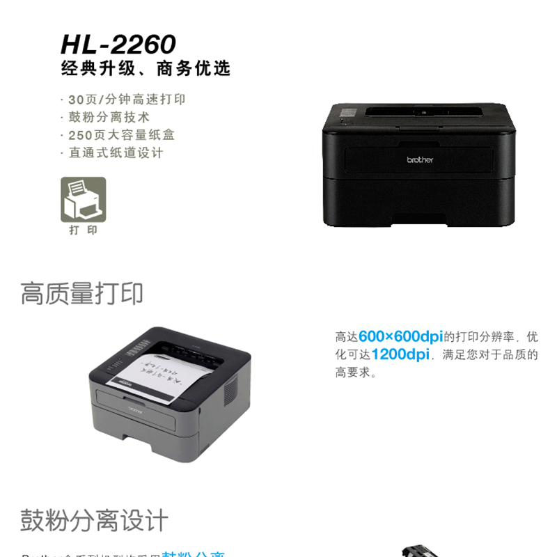 兄弟(brother) HL-2260 黑白激光打印機(jī) A4 30頁(yè)/分鐘
